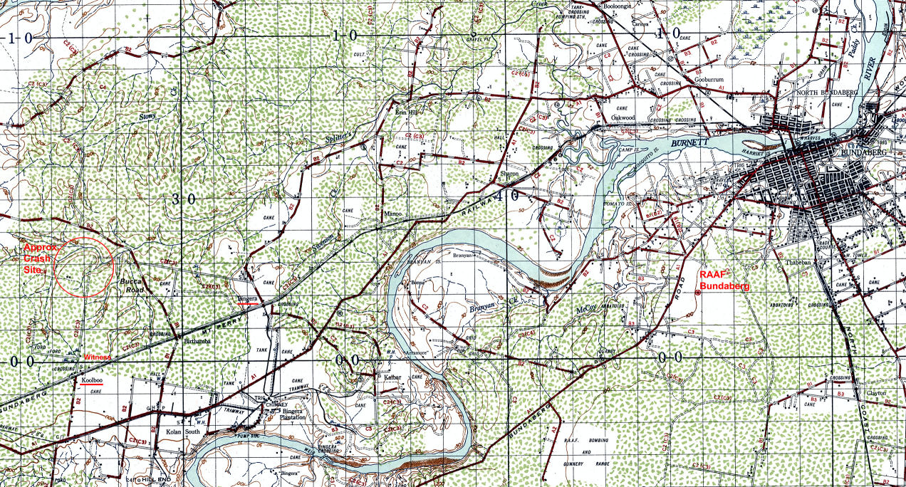 Both aircraft had earlier taken off from Bundaberg airfield at approximately 1030K hours on a box formation flying exercise with two other aircraft flown by the Commanding Officer and F/O Plumridge. Beaufort A9-436 was flying at the No. 2 position in the formation and A9-476 in No. 4 position. At a location about 15 miles west of Bundaberg these two aircraft collided at a height of about 2,000 feet. Both aircraft crashed to the ground and burst into flames.
