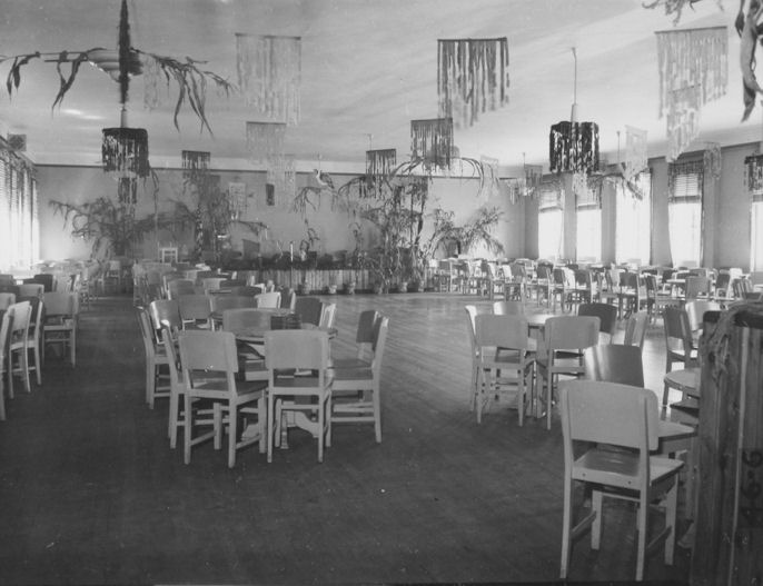 Main Dining Room of the Officer's Club showing Thanksgiving decorations (28 Nov 43)