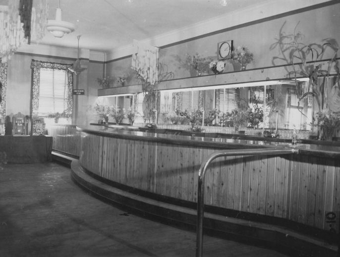 Main bar in the Officer's Club showing decorations for Thanksgiving (28 Nov 1943)