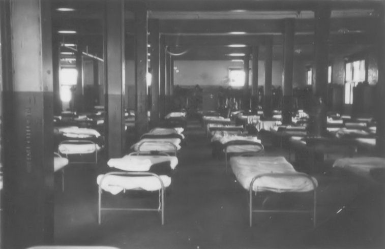 Enlisted Men's bunks inside the Rich Building during WWII