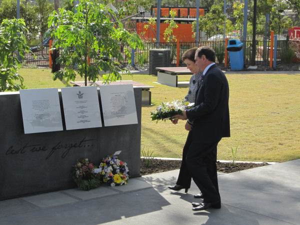 Mayor Paul Pisasale, Mayor of Ipswich, Councillor Sheila Ireland laying a wreath