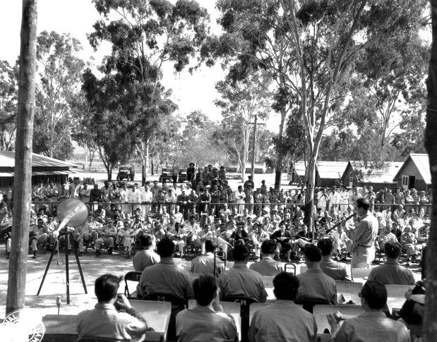 Artie Shaw, Chief Specialist U.S.N., and his band play for patients of the