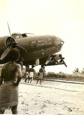 On 15 September 1942, B-17 #41-2659, "Frank Buck", made an emergency landing at Hood Point near Port Moresby after a raid on Rabaul. Vernon O. "Skeets" Elder was the tail gunner on this mission. The above photograph was found by his son Ken Elder among his personal belongings. The aircraft was repaired. It was later transferred to the 43rd Bomb Group.