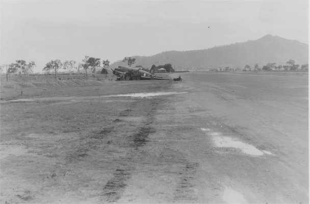 I had written to John Balfe, author of "War without Glory" and also "And Far from Home", enquiring of the strip length. From aerial photos and laborious arithmetic I estimated 3,780 ft. John Balfe considered this too pessimistic, doubting a 30,000 lbs DC.3 would have the 'get up and go' from that distance. He believed it was 5,000 ft conforming to the dimensions of the other satellite strips in the area.