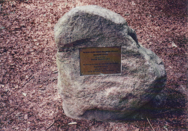 Memorial stone to War Correspondent Grieg on the spot where Lancaster LM316 crashed