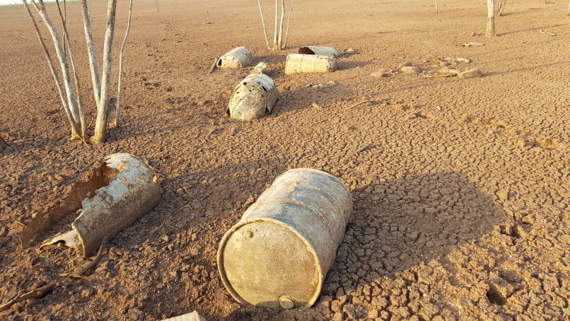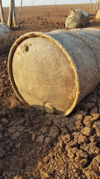 USAAF Fuel drums still visible near the site of the former WWII Campbell Airfield