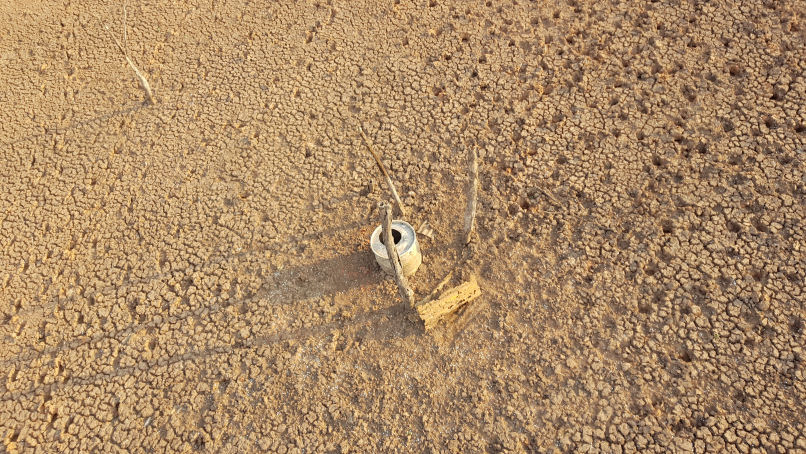 Geoff Sherwill sent me the following photos which were taken on 21 December 2019. They indicate that the US Army Air Force also had a presence at Campbell Airfield during WWII based on the petrol drums that were still visible in Lake Argyle when the water had receded to approximately 45% capacity. Greg was caretaking the property at the time and visited the site by helicopter.
