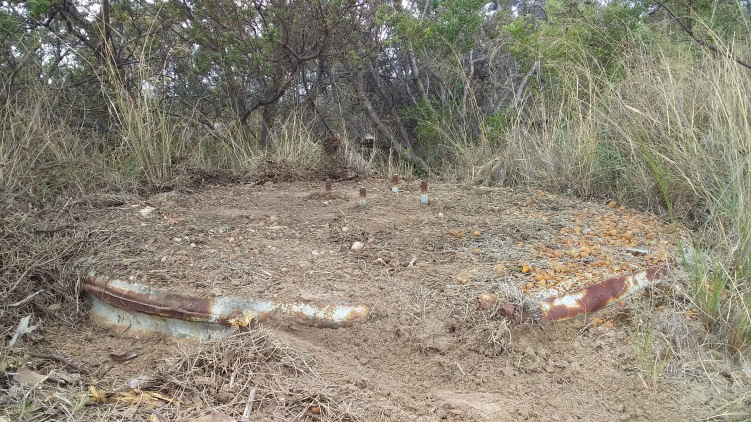 Nicholas Kleinig discovered another machine gun emplacement at the southern end of the airfield on 12 May 2020. It took a bit of chainsaw work to expose it to be able to take the following photos.