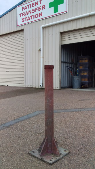 The machine gun mount in the above photo was modified by Ken Crawford by cutting the top off years ago to use the base as a table in his cattle yards. Ken said that the stand once stood at eye-height within the ‘staircase’ gun emplacement, and it had what Ken described as an ‘axle’ mounted on the top to allow 360 degree pivoting. Ken’s kids - all very grown up now - used to play with the mount in that emplacement before the aviation world changed and fences went up around the airfield.
