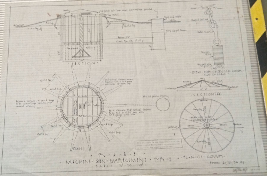 Reading through that same sanitation file, Nicholas found that the machine gun posts were to be built as shown on RAAF plan 41/42/76 and 41/42/84A - the plan attached shows 76 and 84, not 84A, so similar to what exists but not exactly what was constructed. Nicholas believe standard drawings for each RAAF machine gun emplacement type used in Australia will be in here, though still waiting on a response from the National Archives on this one.