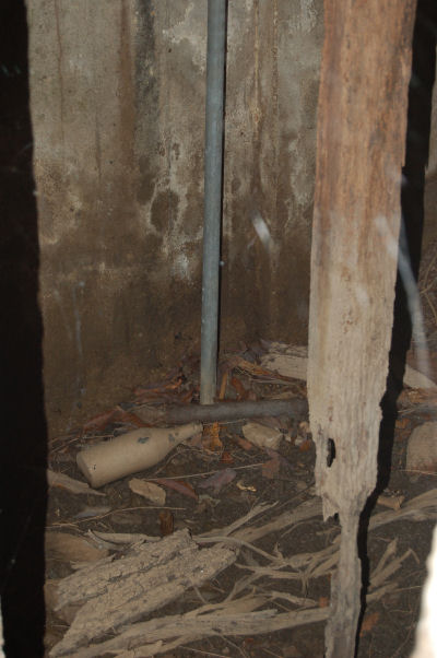 The air raid shelter is actually against the back boundary and adjacent to council park land. There is concern by neighbours that the air raid shelter may soon be demolished in the name of progress. The shelter 2.7m wide, 5m long and is 1.8m high inside.