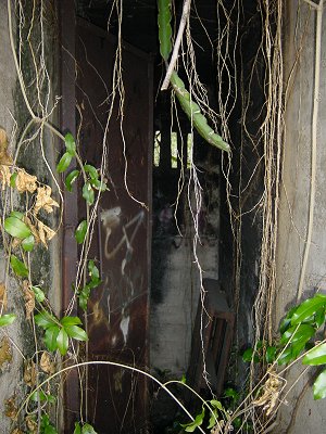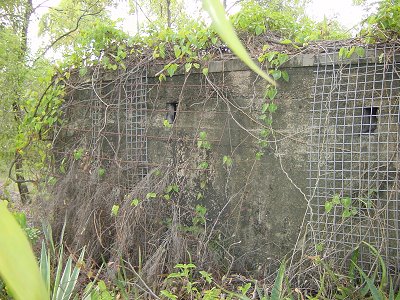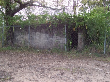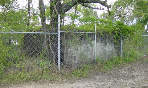 left of the photograph in the bushes behind the high fence. (UBD Map 199 Q5)