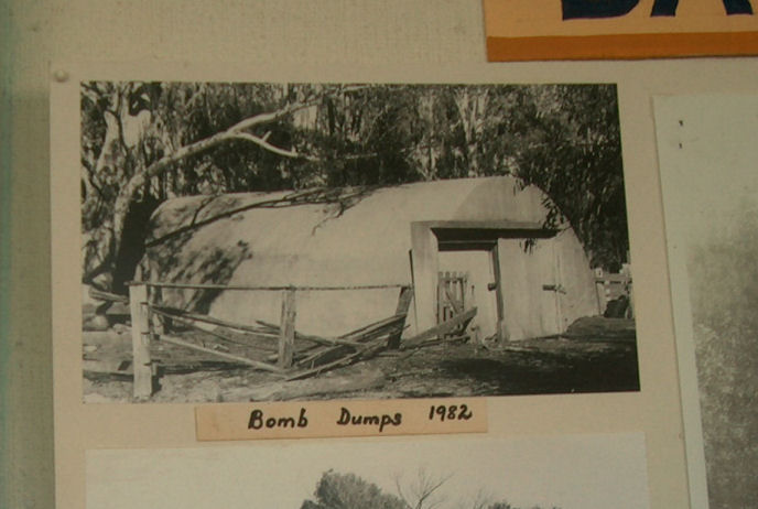 Photo of one of the Ammunition Bunkers on display on a site historical board in the Bairnsdale aerodrome terminal
