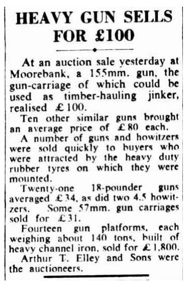 Bernie Smallwood purchased five of these guns in 1958. Four were cut up for scrap, but one was kept and could be seen in Bernie's wrecking yard at Springwood as you drove to the Gold Coast. Bruno Laspina started “The Big Gun Fruit Mart” in 1972 near Bernie Smallwood's original wrecker’s yard. The 7 ton gun was hoisted onto the roof of the fruit mart. The complex was redeveloped in about 2004 and the gun is now positioned on its own special stand sitting high for all to see.