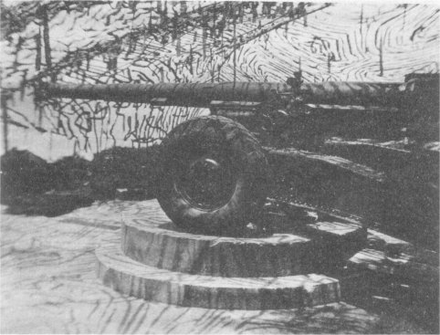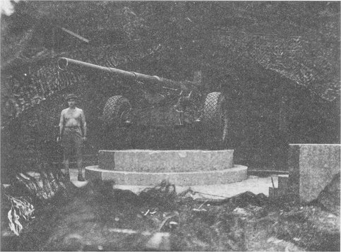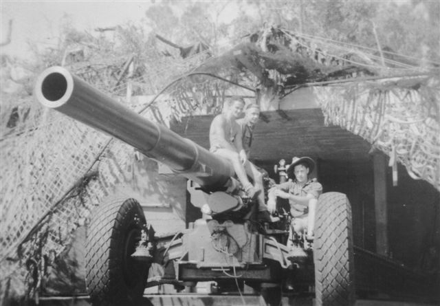 155 mm heavy gun at False Cape Battery. Note the camouflage netting.