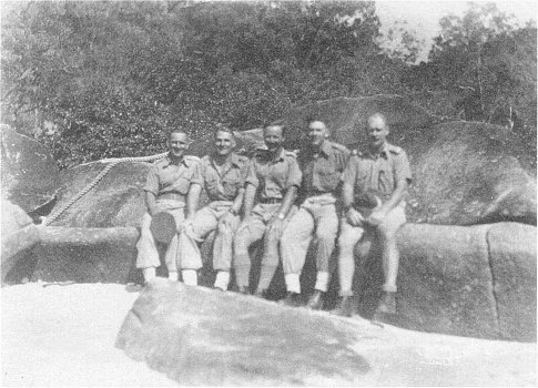 L to R: Lt Oakes, Lt. Harvey, Major Mansfield, Lt. Alcock, and Capt. Allen at Sunny Bay.