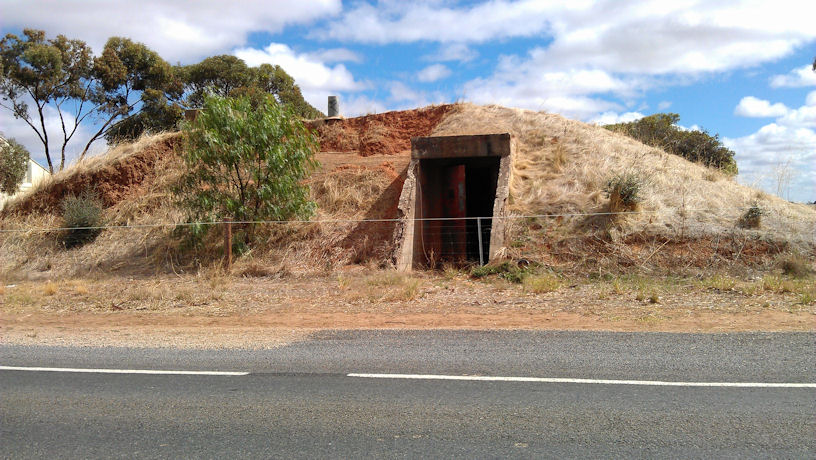 Our transmitting bunker was entered through an opening in the grass-covered area which had been boarded up to keep the earth in place. We went down about 8 steps to a central room which housed the water tank, workshop bench and spare parts cupboard. Cooking equipment for meals was housed there. The food we collected from the RAAF base was top quality - we even cooked our steak and eggs in butter!