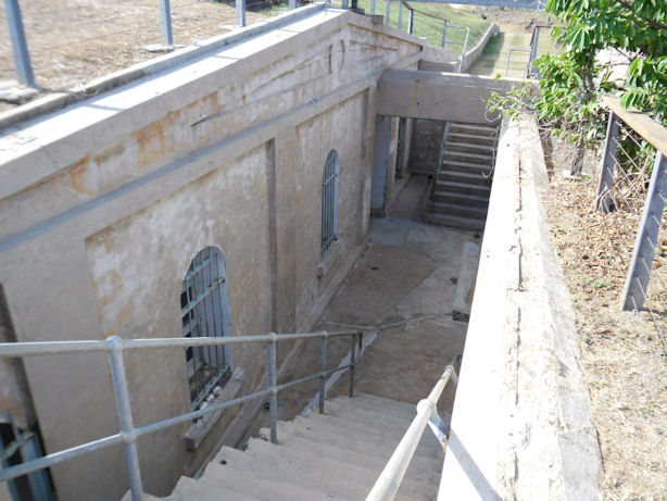 There are five rooms with 600mm thick concrete walls used for ammunition storage. The initial buildings on site were the general storeroom, shell store, cordite room, lamp room and artillery store. A timber and corrugated iron guardhouse (25' x 15') was also built over a 20,000 gallon underground well. A cooling plant machine room and a powder room were added in 1912. "Air conditioning ducts were installed from the cooling plant machine room to the cordite store.