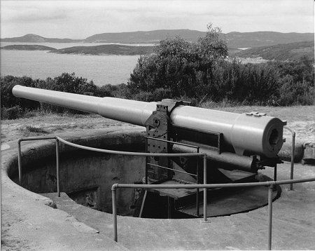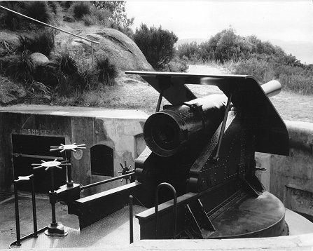 The Mk VII guns were emplaced in 1945, at which time the QFC guns were removed and scrapped. The Mk VII guns had been at the 6-in Leighton Battery (1942-45) previous to that, they were at the Fort Arthur Head Battery (1906 - 1943). The above Mk VII gun featured without a shield is not the original barrel which was scrapped in the 1960's. Roger Martin, who managed the restoration of the fortress in the 1980's, acquired the barrel depicted from Bermuda in the West Indies.