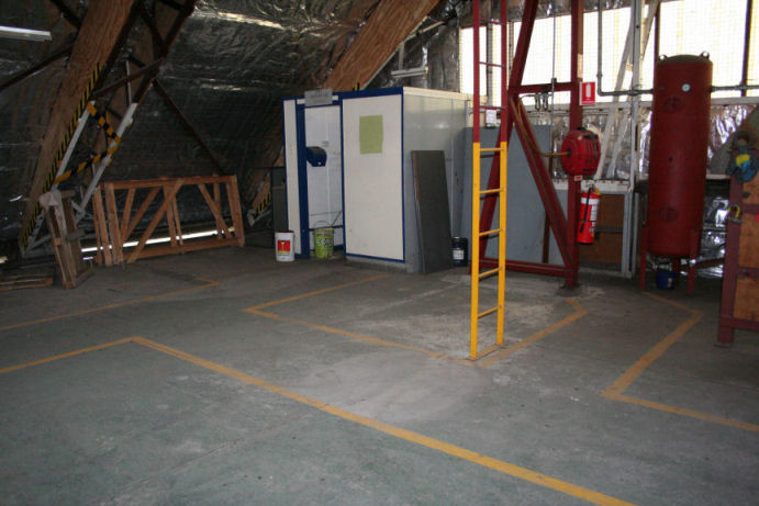 installed. This was the reddish brown steelwork bolted to the floor behind the