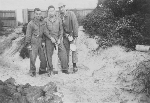 Warren said "Our regiment was one of the first to arrive in Australia and it was equipped with an Automatic Weapons Battery with 50 cal. machine guns. A Gun Battalion, the 744th with 3 inch anti aircraft guns, and a search light Battalion. Our 50 Calibre anti- aircraft machine guns were used against low flying planes. They were set up along the runways on both strips (Iron Range Recovery Base). While in Fremantle we were set up along the key leading to the Fremantle Submarine Base and lived with the Australian soldiers in the buildings along the tracks."