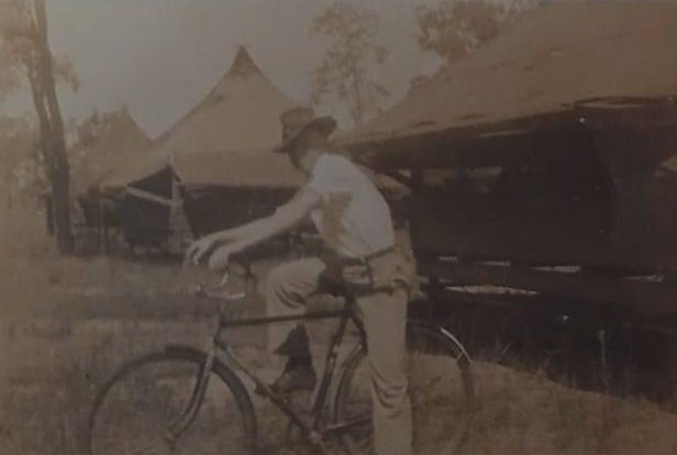 Arthur Tompkins on his push bike in 1944