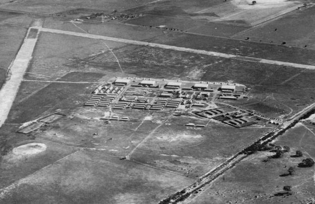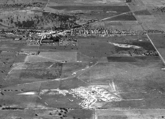 RAAF Base Nhill is late 1942. The disused US Camp can be seen to the left of the main RAAF Camp area