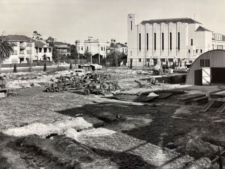 The Wesley College became a testing and storage site for sophisticated military equipment and was trenched with air-raid shelters in 1942-1943. The Cadet Corps was reinstated at Wesley College at St. Kilda Road after war broke out in Europe in 1939 and eventually over 370 cadets enrolled.