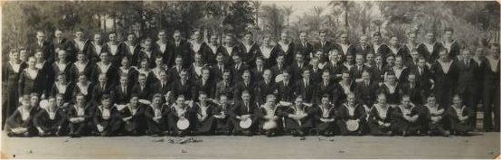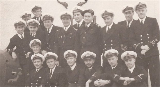 The fellow in the RAF uniform in the above photograph was Flight Sergeant Brett. He is 9th from the left in the 2nd row from the front. The person to his left is L.Commander Ellis - the original Squadron Leader. He was killed while landing on an Aircraft Carrier at night time. He apparently had a bad habit of approaching the Carrier from the bow, then pancaking on to the stern - one night he missed. He was a very good pilot, very highly decorated, but his choice of approach was a mite suspect.