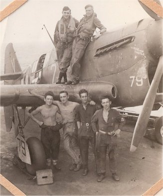 Flight crew and ground crew for Kite No 79 off Japan in 1945