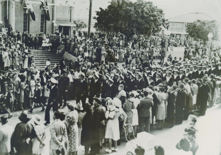 VJ Day Parade of HMS Nabstock personnel in Maryborough (Battersby)