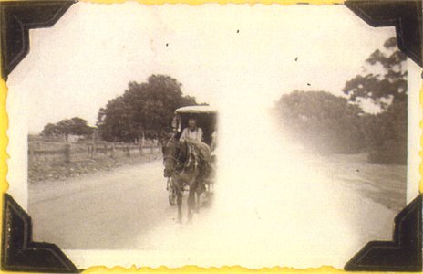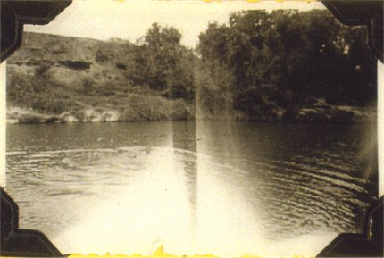 Bill Picardy smuggled a Brownie camera in his barracks bag. The camera was cracked due to rough handling of their baggage in transit. This is the reason for some white patches on some of the photographs.