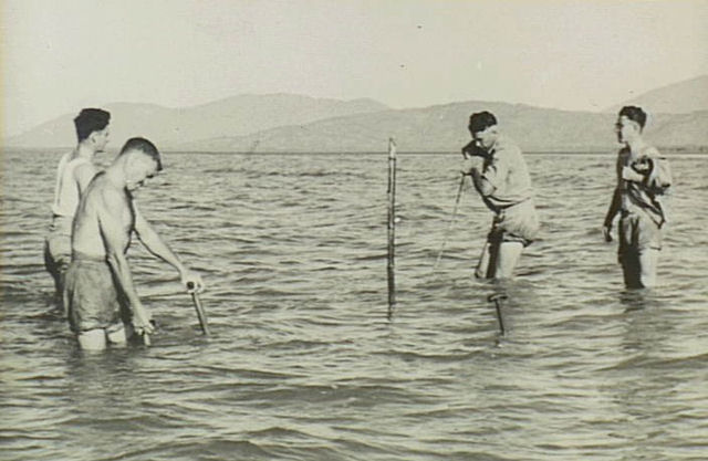 and Sapper Frederick Van Doorn looking for an unexploded Japanese bomb