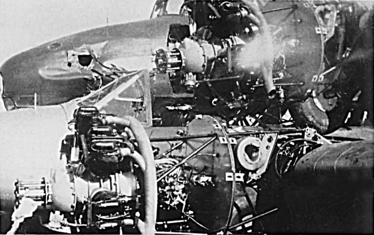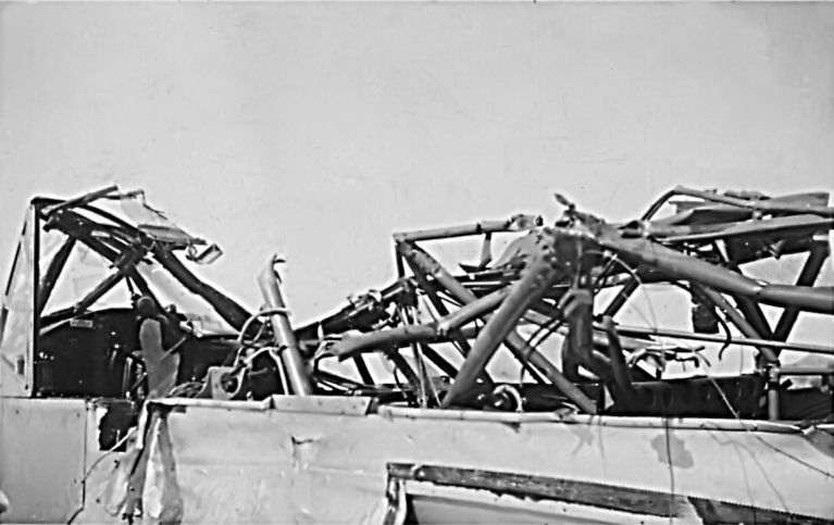View of the cockpit area of Jack Hewson's aircraft, the lower one, after the top aircraft had been removed.