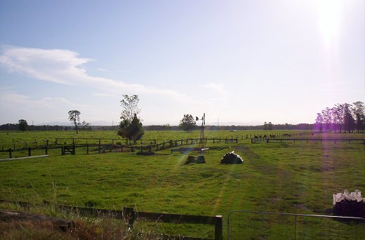 Brian Saul also mentioned that he was also told of a forced landing of an armed bomber during WW2 just to the right of the above photograph with the windmill. The story goes that they were running low on fuel and picked what they thought was a flat bit of ground to land on. The ground turned out to be a paddock covered in thistles about three or four feet high, with the remains of an old fence. The story goes that it was a DC-3 with the bombs under the wings!! (DC-3's did not carry bombs!!). One of the crew members apparently returned around 2001, and his visit was reported in the local paper. Apparently Frank Meehan still has the paper cutting.