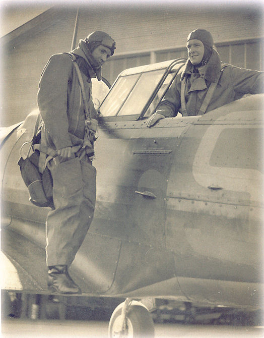 Flying Officer Harry Thomas Hopgood standing on the wing