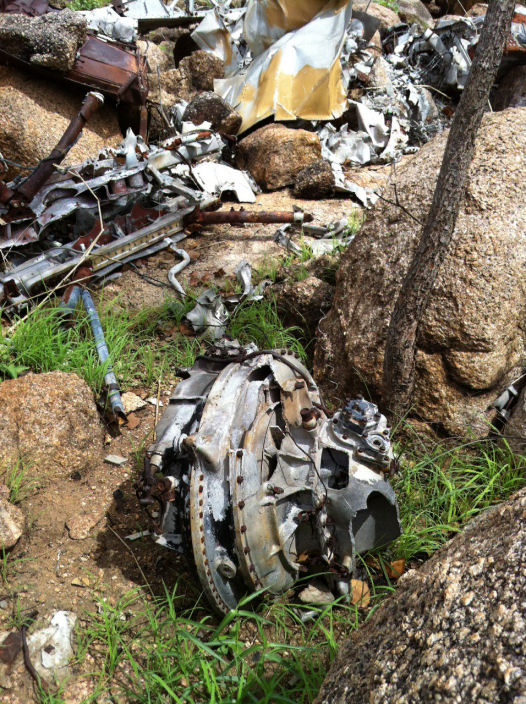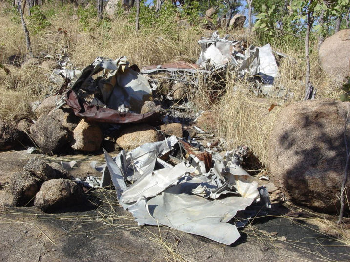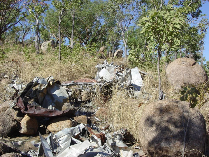 I was contacted by a helicopter pilot from Katherine on 4 November 2011, who told me he had noticed the wreckage of a WWII aircraft. He initially told me that it had twin engined six cylinder aircraft and there were 20mm shell cases and other small arms bullets and shells littered around the wreckage. Many of them were still live. He flew back to the site to take some photos for me which I used with the help of some of my contacts to identify it as a Spitfire with a V12 engine. The engine had split into two six cylinder blocks on impact.