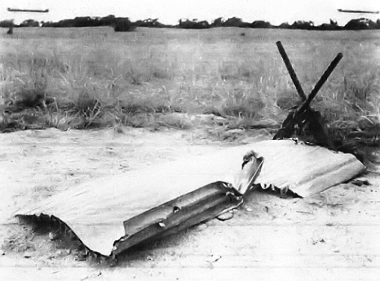 members killed in this crash landing. It is covered by a wrecked