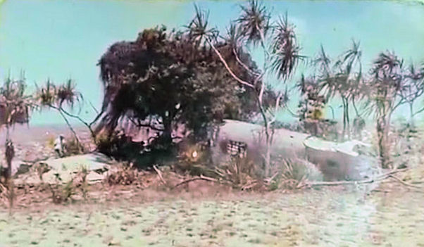The presence of Britomart Shoal off Croker Island led to a cautious approach to the island. HMAS Inverell anchored ¾ mile off Cape Croker at 0900 hours. Several persons could be seen standing near the crashed aircraft.
