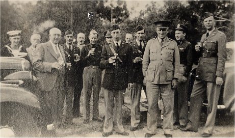 Mayor Milton F. Gray of Malvern and staff including in front row Col R. Moss, Australia, and to his right Capt. Swanson. In rear second from right is David Silverman. Also U.S. officers included are Wayne Shoup and Bill Plain yet unidentified (awaiting Shoup's son to ID). |