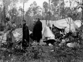 With the country's pre-occupation with the bombing of Darwin the accident was largely overlooked. One source indicated that when the investigators from Department of Civil Aviation Head Office in Melbourne arrived late the next day it was found that the wreck had been deliberately burnt on the authority of local DCA staff about 8 hours after the crash. John Lovett told me that the wreckage had not been burnt on site but had been removed from the site. Metal fittings had been cut from the wreckage with axes and taken to Archerfield airfield. Apparently the site was covered in oil, petrol and battery acid after the crash.