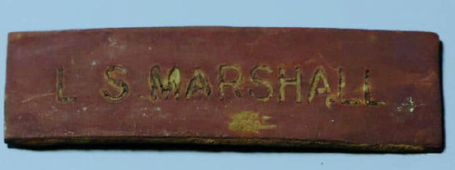 I went to site with Fred Wimmer and Warren McGrath on 3 June 2023. We parked on Prout Road, Burbank near the track that led most of the way to the crash site. After a short 8 minute walk we had reached the crash site. Fred lent me one of his metal detectors. He showed me how to use it and I swung it a few times and immediately found a possible target. I then located a small rectangular piece of brass just below the surface. It was covered in dirt. As I cleaned the dirt off the piece of brass, the name “L. S. Marshall” appeared which sent a shiver down my spine. I immediately grabbed the printout of my web page on the crash of VH-USE that I had with me and saw that Chief Officer Lindsay Stuart Marshall had been the co-pilot on this aircraft!