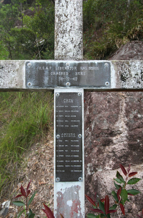 USAAF B-24 Liberator, #41-23825, now commonly known as "Texas Terror", of the 400th Bomb Squadron of the 90th Bomb Group, crashed into the southern side of Mount Straloch on Hinchinbrook Island on 18 December 1942 during a violent storm. It was being flown from Amberley to Iron Range by 1st Lieutenant James Gumaer for delivery to the 90th Bombardment Group. A total of 12 persons were killed in this tragic crash. 1st Lt. Gumaer and his 4 crewmen had picked up at least 7 passengers at Garbutt airfield in Townsville on their way to Iron Range.