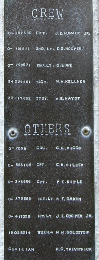 | Capt. James E. Gumaer, Jr. (Pilot) (0-397390) | 90th Bomb Group |