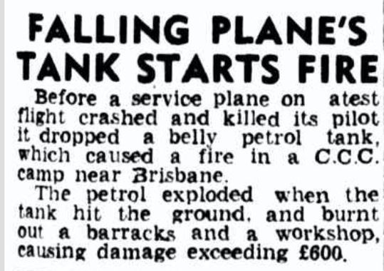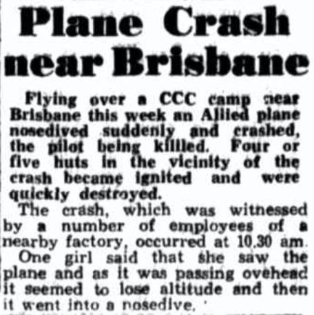 The above articles indicate that an American aircraft crashed at about 10:30am one day that week near some Civil Constructional Corps huts in a C.C.C. Camp.