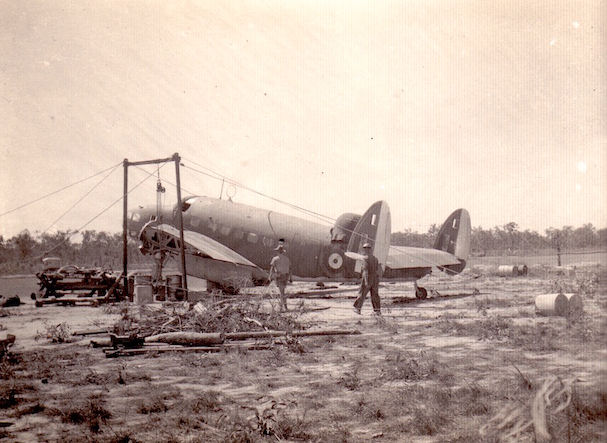 Lockheed Hudson A16-155 being repaired under camouflage netting at Coen