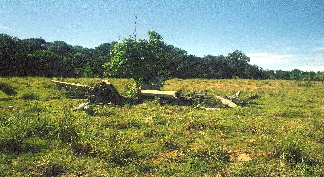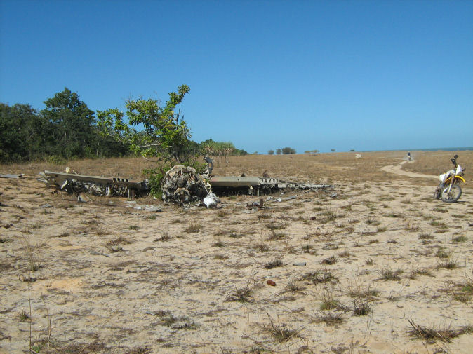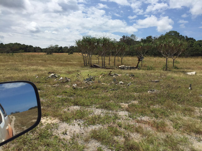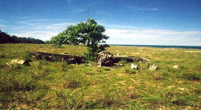The planes were in a very poor state when Rob and his wife visited the site. One aircraft wreck was more complete than the other, but there was still very little left. One had it's motor nearby, no propeller, the wings, engine exhaust and assorted pieces of aluminium sheet lying around. The other had wings and a pile of pieces, nothing bigger than a shoebox, that have been placed there by someone. Neither of them had a fuselage. The wings had no armaments left in them. There was a photo in the Weipa library taken in 1959 from an aircraft that shows the planes.