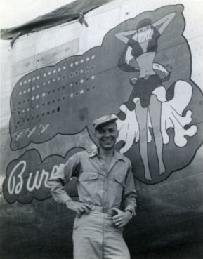 The aircraft was named "Burma", the All-American girl, who was a character from Milton Caniff’s "Terry and the Pirates" comic strip. Her alter egos were Madame Shoo Shoo and Dragon Lady, both also well used as nose-art on various aircraft during WWII.