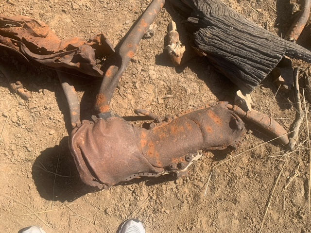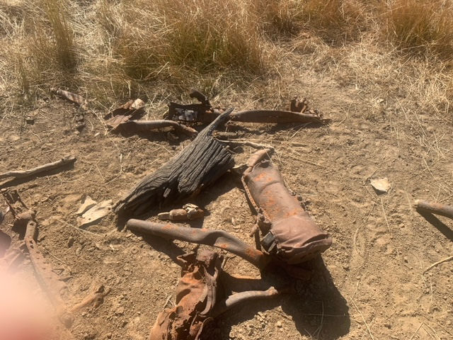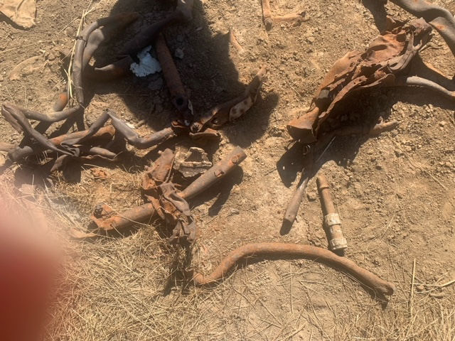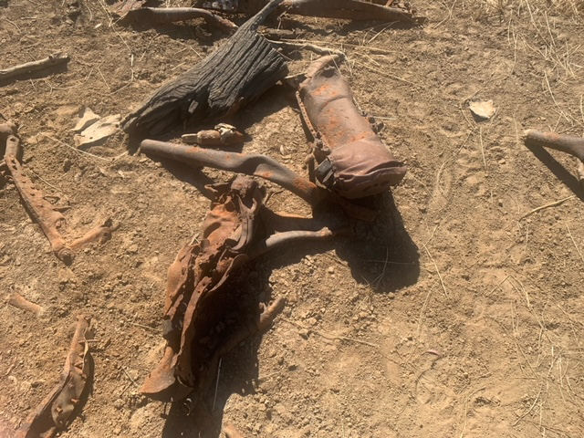 In March 2021 Ronnie Parr advised that he had lived in Violet town for 10+ years and heard of this crash site through his father after 3 years of searching for it. He eventually found the site. Last time he was out there it was still a significant site with a deep crater and a prop hub with part of the props still attached and bent and also some twisted metal frame work. Ronnie advised that he was led to believe through town locals that the canopy is at a local gentleman’s farm. Ronnie visited the crash site again on 30 December 2021 and took the following photos. Ronnie was disappointed to find that someone had unfortunately removed parts from the site such as the prop hub:-
