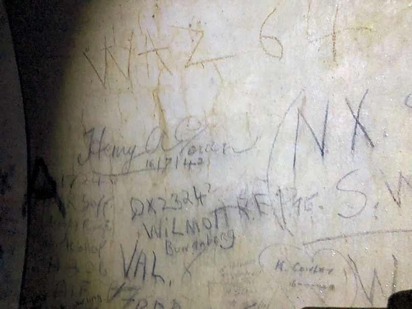 Some WWII graffiti inside the tunnel on 1 December 2018